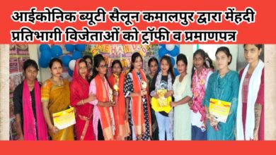 विजेताओं को मिला ट्रॉफी-प्रमाणपत्र आईकोनिक ब्यूटी सैलून कमालपुर द्वारा मेंहदी प्रतियोगिता