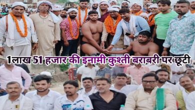 1 लाख 51 हजार की कुश्ती बराबरी पर छूटी श्रीकृष्ण व्यायामशाला दंगल में