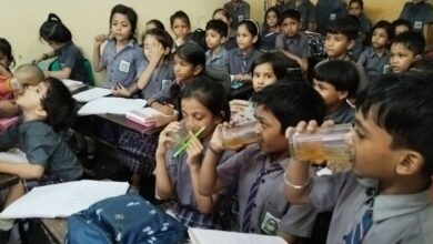 स्टूडेंट्स पब्लिक स्कूल में बच्चों को गर्मी से निजात दिलाने केलिए ग्लूकोज,चीनी -नामक का घोल दिया जारहा है