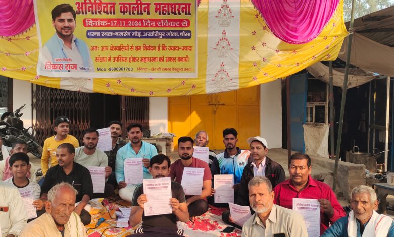 चौसा,बक्सर(बिहार)चौसा स्टेशन से बजरंग मोड़ की अत्यंत दयनीय स्थिति हो चुकी जर्जर रोड के निर्माण केलिए अनिश्चित कालीन महाधरना का 9 वाँ दिन भी जारी रहा। उपचेयरमैन प्रतिनिधि अंतराष्ट्रीय खिलाड़ी विकास राज अपने युवा टीम साथियों व विभिन्न वार्ड पार्षदों तथा नगर के गणमान्य लोगों के साथ धरने पर बैठ आवाज उठाने वालों के साथ उपचेयरमैन प्रतिनिधि अंतराष्ट्रीय खिलाड़ी विकास राज ने धरने के नौवें दिन कहा कि यदि 26 नवम्बर दिन मंगलवार तक कोई पहल नही होगा तो महाधरना के 10वाँ दिन आमरण अनशन के लिए जिलाधिकारी एवं सदर अनुमंडल पदाधिकारी को ज्ञापन सौप कर अनिश्चित कालीन महाधरना को आमरण अनशन में तब्दील कर दिया जाएगा।