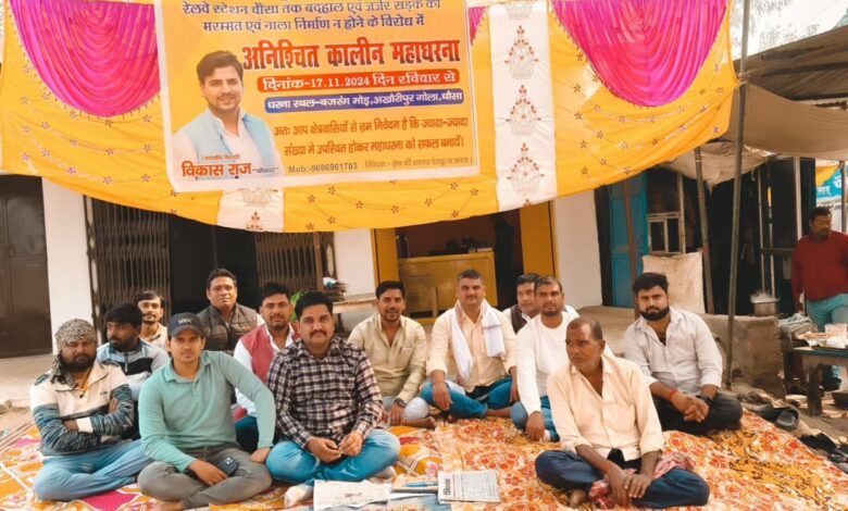 अनिश्चितकालीन महाधरना का आज 11वां दिन सड़क निर्माण केलिए