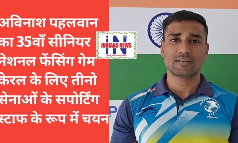 अविनाश पहलवान का 35वाँ सीनियर नेशनल फेंसिंग गेम केरल के लिए तीनो सेनाओं के सपोर्टिंग स्टाफ के रूप में चयन