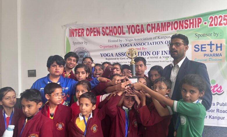 इंटर ओपन स्कूल योगा चैंपियनशिप 2025 का आयोजन कानपुर के मंटोरा पब्लिक स्कूल में संपन्न