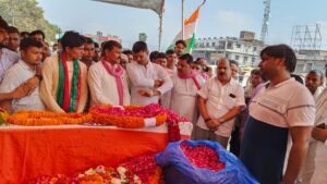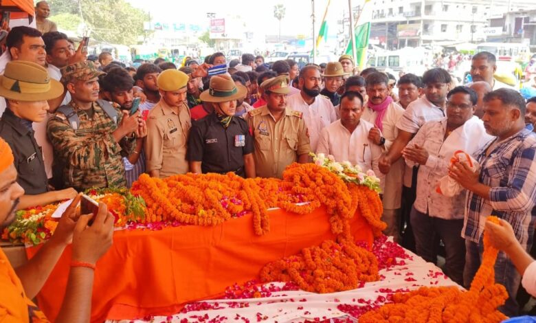 मेजर सूबेदार सुरेश यादव की पार्थिव शरीर गाँव आने पर हजारों लोगों ने नम आंखों से अमर रहे के जयघोष के साथ पार्थिव शरीर का दाह संस्कार किया