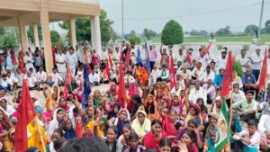 अधिग्रहित की जा रही जमीनों तथा प्रभावित मकान का उचित मुआवजा केलिए घरना