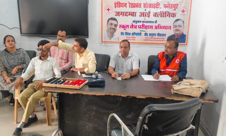 इंडियन रेडक्रास सोसाइटी फतेहपुर व जगदम्बा आई क्लीनिक के संयुक्त तत्वावधान में स्कूल नेत्र परीक्षण अभियान