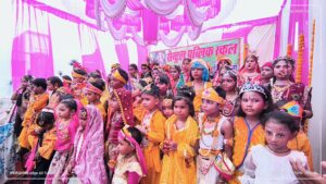 बच्चों ने आकर्षक परिधानों, भावपूर्ण मुद्राओं और मनोहारी प्रस्तुतियों से श्रीकृष्ण–राधा के दिव्य स्वरूप को जीवंत कर दिया। पूरे विद्यालय परिसर में भक्ति, उल्लास और सांस्कृतिक सौंदर्य का वातावरण व्याप्त हो गया। मुख्य अतिथि एवं विशिष्ट अतिथियों ने विजेताओं को पुरस्कृत करते हुए बच्चों की सृजनात्मकता की सराहना की और इस आयोजन को भारतीय संस्कृति की आत्मा से जोड़ने वाला प्रयास बताया। आखिर में आरती के उपरांत गवाल बाल के साथ श्री कृष्ण ने मटकी फोड़ी।