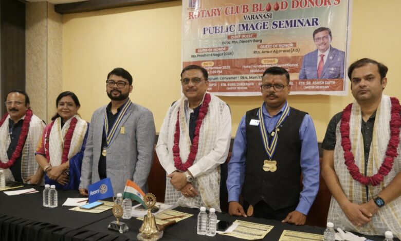 वाराणसी,यूपी: रोटरी क्लब ब्लड डोनर्स वाराणसी द्वारा आज मलदहिया स्थित होटल हिंदुस्तान इंटरनेशन में रोटरी पब्लिक इमेज संगोष्ठी का आयोजन किया गया। संगोष्ठी के विशिष्ट अतिथि डिस्ट्रिक्ट चेयर पब्लिक इमेज रो मीना सिंह, डिस्ट्रिक्ट सेक्रेटरी एवं क्लब जी एस आर रो प्रशांत नागर तथा असिस्टेंट गवर्नर अमर अग्रवाल सहित मुख्य अतिथि डी जी एन दिनेश गर्ग की उपस्थिति में क्लब सदस्यों द्वारा सर्व प्रथम सबको अंग वस्त्रम तथा माला पहना कर स्वागत किया गया। रो मीना सिंह ने कहा कि जब हम औरों के लिए कुछ ऐसा करते है जिससे उस व्यक्ति का जीवन सवर जाता है तो आप इससे बेहतर पब्लिक इमेज का कार्य नहीं हो सकता।