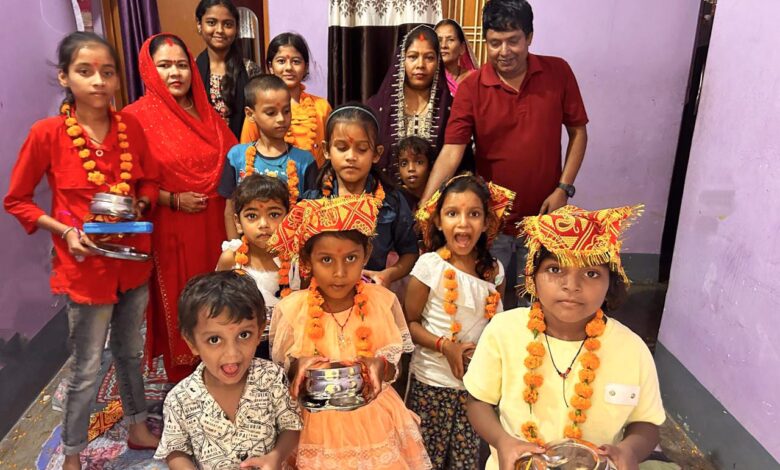 नवरात्रि के अंतिम दिन कन्या पूजन के साथ कन्या भोज का आयोजन