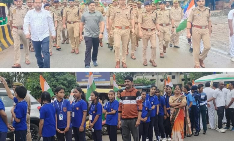 ज्योति कॉन्वेंट स्कूल के छात्रों ने तिरंगा झंडा लेकर और देशभक्ति के नारे लगाते हुए एकजुटता का शानदार प्रदर्शन किया