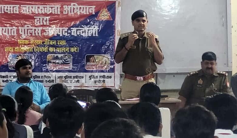 चंदौली पुलिस द्वारा कॉलेज में यातायात नियमों के प्रति छात्र व छात्रओं को पढाया गया ‘सड़क सुरक्षा’ का पाठ