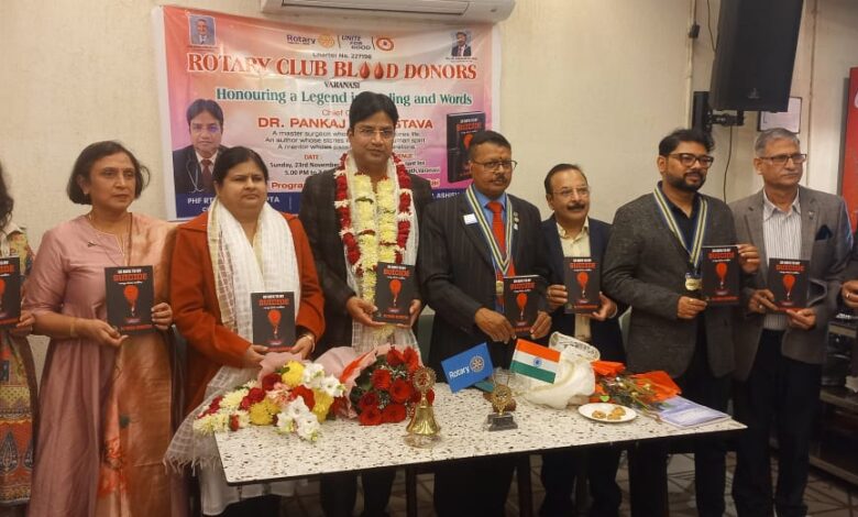 वाराणसी,यूपी: 23 नवम्बर को रोटरी क्लब ब्लड डोनर्स वाराणसी द्वारा सारनाथ स्थित स्थानीय होटल अनंत इन में आज गरिमामय सम्मान समारोह का आयोजन किया गया, जिसमें आत्महत्या (Suicide Prevention) विषय पर अत्यंत संवेदनशील एवं जागरूकता बढ़ाने वाली पुस्तक “30 days to my suicide” लिखने के लिए डॉ. पंकज श्रीवास्तव का सम्मान किया गया। समाज में मानसिक स्वास्थ्य के प्रति जागरूकता फैलाने के लिए किया गया उनका यह योगदान अत्यंत सराहनीय है।