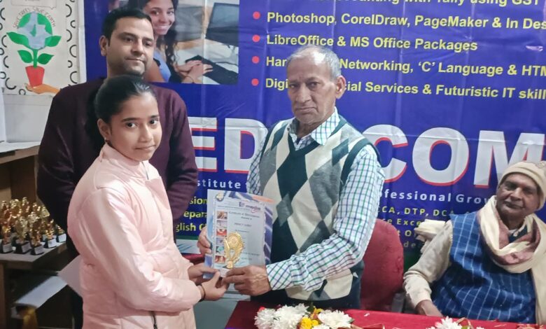 न्यू मीडियाकॉम एकेडमी(कंप्यूटर) रविनगर में विश्व कम्प्यूटर साक्षरता दिवस एवं वार्षिक खेलकूद पुरस्कार वितरण
