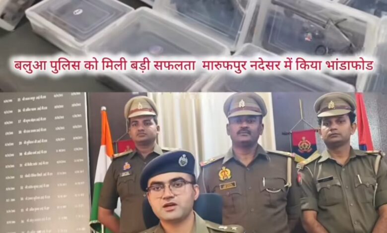 चन्दौली,यूपी: थाना बलुआ पुलिस ने जबरदस्त सफलता हासिल करते हुए ग्राम नदेसर मारूफपुर में संचालित अवैध असलहा फैक्ट्री का खुलासा किया।पुलिस ने मौके से 3 तमंचे (12 बोर, 315 बोर व अर्द्धनिर्मित), दर्जनों कारतूस, और असलहे बनाने के उपकरण व पुर्जे बरामद किए।