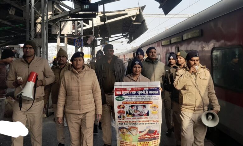 आरपीएफ डीडीयू जं पर माघ मेला के दौरान जागरूकता अभियान