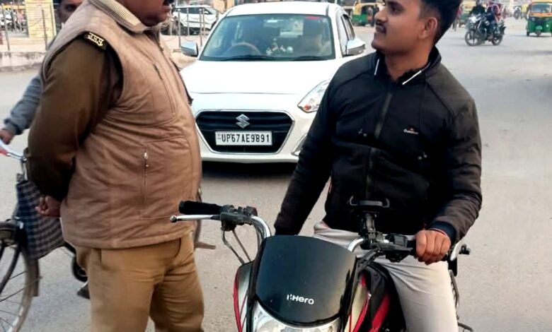 चन्दौली,यूपी:अपर पुलिस महानिदेशक वाराणसी जोन वाराणसी पीयूष मोर्डिया,पुलिस उपमहानिरीक्षक परिक्षेत्र वाराणसी वैभव कृष्ण द्वारा निर्गत आदेश के क्रम में चंदौली पुलिस अधीक्षक आदित्य लांग्हे के निर्देशन में कृष्ण मुरारी शर्मा क्षेत्राधिकारी यातायात के पर्यवेक्षण में सत्य प्रकाश यादव, प्रभारी निरीक्षक यातायात मय यातायात टीम व जनपदीय थाना पुलिस टीम द्वारा जनपद में विशेष वाहन चेकिंग अभियान के दौरान बिना हेलमेट, बिना शीटबेल्ट, तीन सवारी, पिकअप बिना रजिस्ट्रेशन व यातायात नियमों का उल्ल्घन करने वाले चेकिंग अभियान के दौरान बिना हेलमेट-51 वाहन, नो पार्किंग-15 व गलत नम्बर का प्रयोग करने वाले-02 वाहन सहित कुल-101 वाहनों का यातायात के अन्य धाराओं में चालान की कार्यवाही की गई। इस अभियान के दौरान कुल-101 वाहनों से ₹ 1,85,000/- का चालान किया गया है। । इसी प्रकार प्रमुख चौराहों पर यातायात अपराधों के विरूद्ध विशेष सघन चेकिंग अभियान चलाकर यातायात नियमों के पालन के लिये जागरुक किया गया।