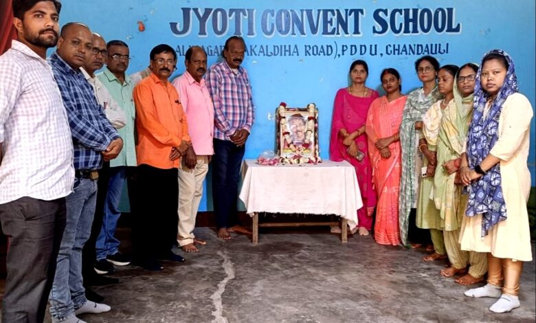 पीडीडीयू,चंदौली: अलीनगर ज्योति कॉन्वेंट स्कूल में गोकुल आर्ट के माध्यम से हजारों कलाकारों को मंच देकर अनेकों नाट्य, रंग,कला का प्रतियोगिता करवाकर पहचान दिलाने वाले नाट्य रंगकर्मी मोती लाल गुप्ता-बिहिया का आकस्मिक निधन सुनकर अस्मिता नाट्य संस्थान के संस्थापक/महासचिव नाट्य रंगकर्मी विजय कुमार गुप्ता के प्रमुख संयोजन में, दीनदयाल नगर मुगलसराय के प्रख्यात समाजसेवी रतन लाल श्रीवास्तव के अध्यक्षता में, कवि इन्द्रजीत तिवारी निर्भीक के संचालन में, कृष्ण मोहन गुप्ता के दिशा निर्देशन में शोक श्रद्धांजलि अर्पित किया गया।