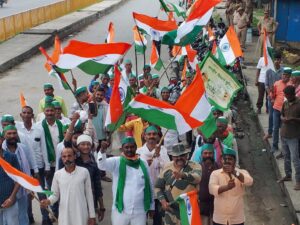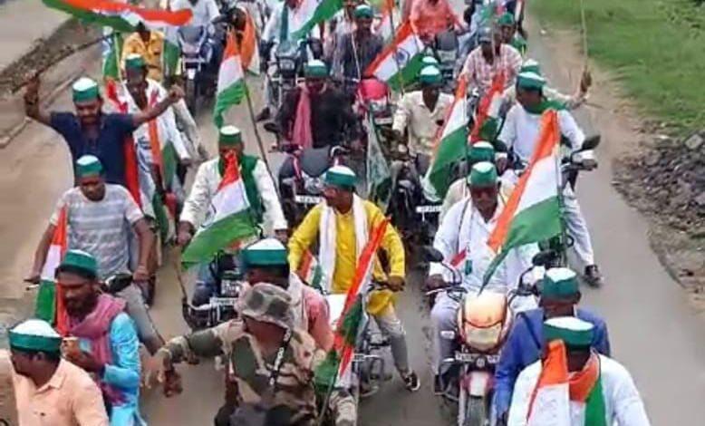 चंदौली: 78 वें स्वतंत्रता दिवस समारोह को भारतीय किसान यूनियन टिकैत ने हर घर तिरंगा को सही मायनों में चरितार्थ करते हुवे, पूरे जिले में जिलाध्यक्ष सतीश सिंह चौहान के नेतृत्व में रंगारंग बाइक तिरंगा यात्रा निकाली।। गांवों से होती हुई यात्रा हर ब्लाक क्रमशः नौगढ़, चकिया, सहाबगंज, नियामताबाद,चन्दौली, बरहनी,सकलडीहा,धानापुरचहनियां से मुख्यालय चन्दौली पहुंची। जहां डीजे के साथ सैकड़ो बाइक सवारों ने तिरंगा यात्रा क्रमशः बिछिया पैट्रोल पम्प से पुलिस अधीक्षक कार्यालय होते हुवे,महेंद्र टेक्निकल कालेज से कमलापति चिकित्सालय से कचहरी होते धरना स्थल बिछिया पर पहुंचकर एक सभा किया। रास्ते मे राहगीरों और स्कूली छात्र छात्राएं रैली की वीडियो बनाते देखे गए। पूरा बाइक रैली तिरंगे से अटा पड़ा था। लोग भारतमाता की जय जय बोल रहे थे। लोग इस तिरंगा रैली से उत्साहित देखे गए। साथ ही जिला कार्यालय का भी उद्घाटन मुख्यालय पर किया गया।
