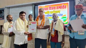 आयोजन अध्यक्ष चिंतित बनारसी ने -फलक पर जब कभी दिखाई दे इंद्रधनुष सतरंगा, गौर से देखो उसमें दिखाई देगा अपना तिरंगा सुनाकर श्रोताओं को मंत्रमुग्ध कर दिया। विशेष रूप से रचनाकारों का सम्मान शिक्षाविद् एन.एम.मिश्रा, फिरोज खान,एन.एम.सिंह, योगेश, विश्वकर्मा समाज के घनश्याम विश्वकर्मा, अनिता मौर्या ने किया। आयोजन के अन्त में धन्यवाद आभार एन.एम. मिश्रा – प्रख्यात शिक्षाविद् ने किया।