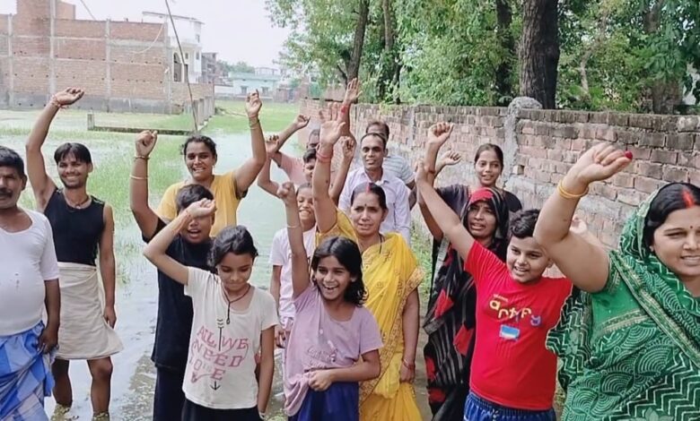अमोघपुर गांव का रोड बना तालाब,बच्चे मैलायुक्त पानी से होकर जाते स्कूल,सर्पदंश का भी डर सताता