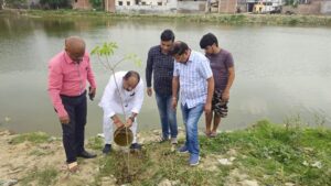पीडीडीयू नगर,चंदौली: चेतना मंच परिवार से संबद्ध ‘चेतना पर्यावरण मंच’ द्वारा रविवार को सुभाषनगर वार्ड में बरम बाबा मंदिर के पास तालाब के किनारे 25 पौधे लगाए गएI पौधरोपण अभियान की शुरुआत भी कियाI इस अभियान की विशेष बात यह है कि जो भी पौधे लगाए जाएंगे उनकी सुरक्षा के लिए बकायदा ट्री गार्ड लगवाए जाएंगे साथ ही उसी मोहल्ले के जागरूक लोगों को ‘वृक्षसखा’ व महिलाओ को ‘वृक्षसखी’ बनाया जाएगाI उन्हें उन पौधों के संरक्षण की जिम्मेदारी दी जाएगीI