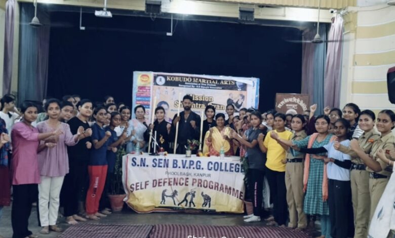 कानपुर,यूपी: एस एन सेन बालिका पी जी कॉलेज में सेल्फ डिफेंस कार्यक्रम के अंतर्गत छात्रों को आत्मरक्षा हेतु प्रशिक्षण दिया गया।इस कार्यक्रम में महाविद्यालय की प्राचार्य प्रोफेसर सुमन ,वरिष्ठ प्रध्यापिका प्रोफेसर निशि प्रकाश , कुलानुशासिका, ममता अम्रवाल ने कार्यक्रम का उद्घाटन मां सरस्वती के तैल्य चित्र पर माल्यार्पणकर किया।