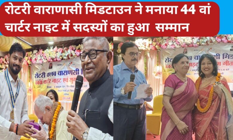 रोटरी वाराणासी मिडटाउन ने मनाया 44 वां चार्टर नाइट में सदस्यों का हुआ सम्मान